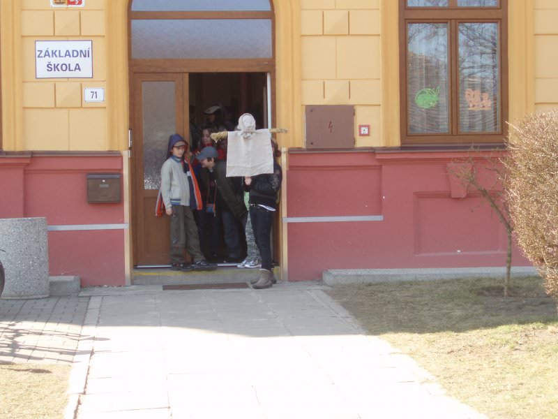 Letošního jara jsme se už nemohli dočkat, a proto se nám moc líbilo, že ho můžeme přivítat již 20. března – tedy o den dříve než v minulých letech. Poctivě jsme se na vítání připravili, vyrobili jsme si Moranu, která má symbolizovat zimu, mráz a nepohodu a vypravili jsme se všichni společně hodit ji do řeky. Přálo nám opravdové jarní počasí a vycházka k řece byla velmi příjemná. Letošní Dyje nebyla tak divoká jako v minulém roce a tak Morana mohla klidně a důstojně plynout spolu s jejím klidným tokem. Písnička „O jaru“ ji provázela na cestě a spolu s ní naše pohledy plné naděje, že se „nezasekne“ v zatáčce a tím nám nezkomplikuje jaro. Zatáčku vybrala bravurně a teď už novému jaru nic nebrání v tom, aby bylo krásné, teplé a slunečné.